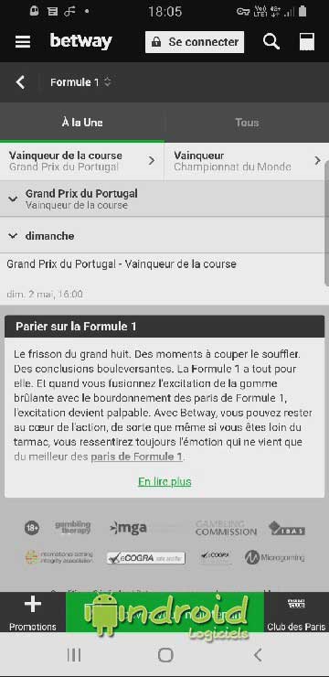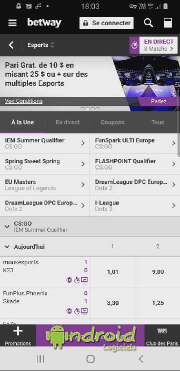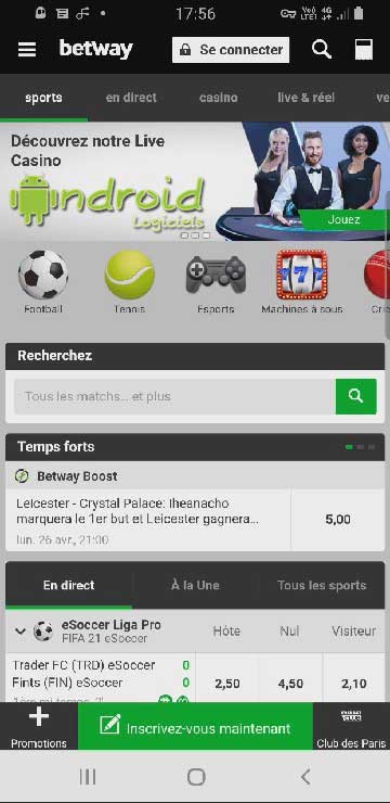 Page de téléchargement officielle : https://betway.com/fr/app-fr-sports