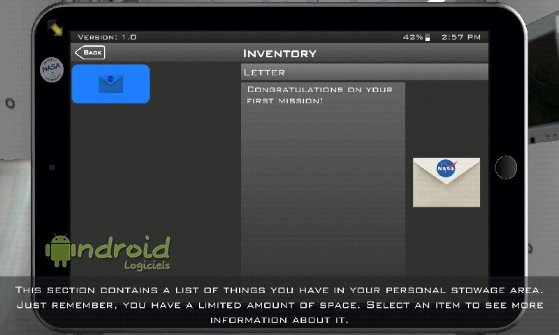 Apporter des correctifs à vos différentes missions, exécution de tâches, découvertes, trouver et utiliser des outils, ..., tel sera votre quotidien dans la station. L'application vous permettra également d'accéder à des informations détaillées sur vos expériences.