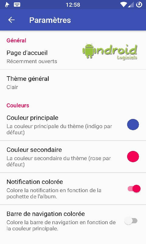 En complément de la fonction dynamique de changement des couleurs de l'interface selon la base des contenus, l'application offre un choix de couleurs différentes si vous souhaitez lui ajouter une petite touche personnelle.