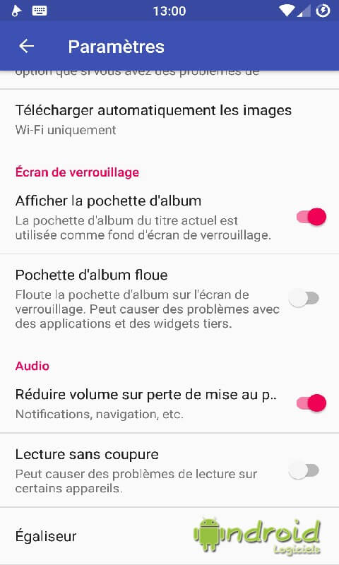 Concernant les pochettes, j'ai cependant pu constater que certaines n'étaient pas reconnues pour des titres anciens mais pourtant très connus. Si vous rencontrez ce problème, dirigez-vous dans les paramètres de l'application et vérifiez les réglages "Ignorer le stockage" et le mode de téléchargement en fonction du réseau mobile.