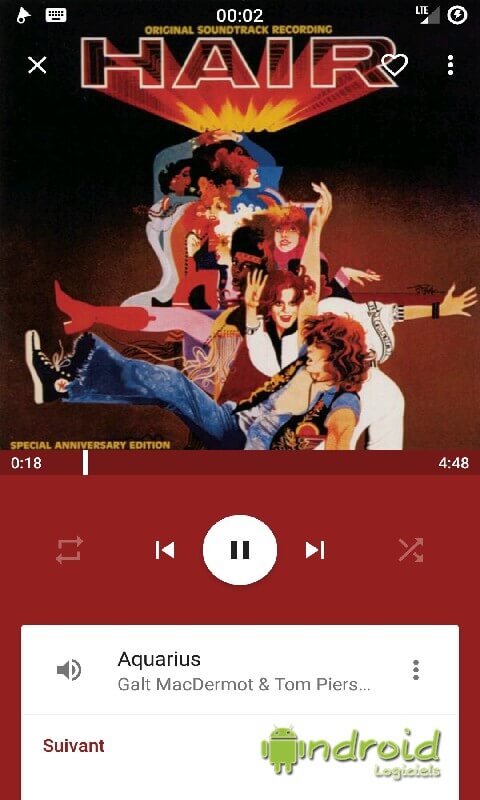 - Aperçu de la lecture encours dans la barre de notifications.