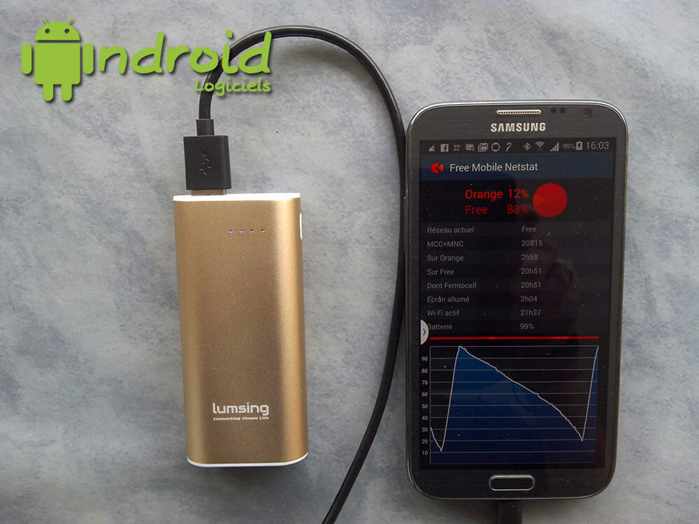 La capacité de 6700mAh m'a permit de recharger 2 fois mon Note 2 (3000mAh) et ma montre connectée sans avoir à recharger ma batterie nomade. Notez que la batterie s’éteint automatiquement à la fin de la charge.