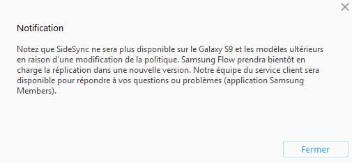 A noter que SideSync ne sera plus disponible sur le Samsung Galaxy S9 et les modèles suivants. Ce service sera remplacé par Samsung Flow.